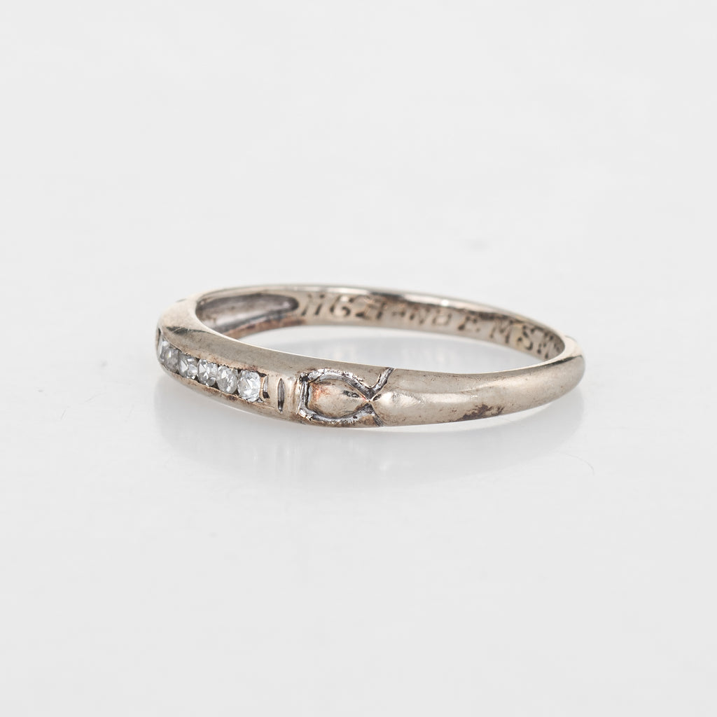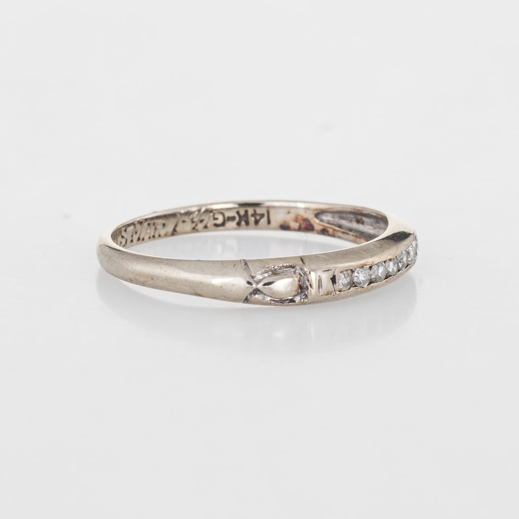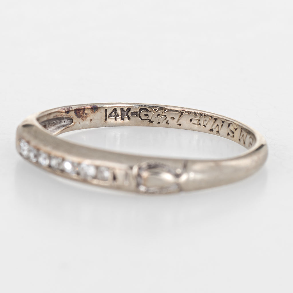 Elegant vintage diamond wedding band (circa 1941) crafted in 14 karat white gold.