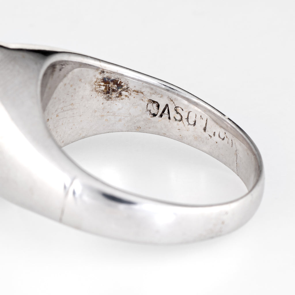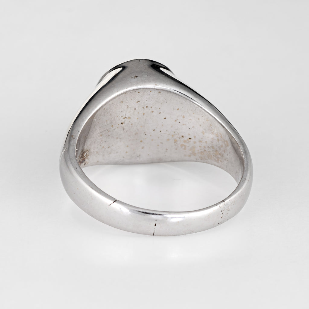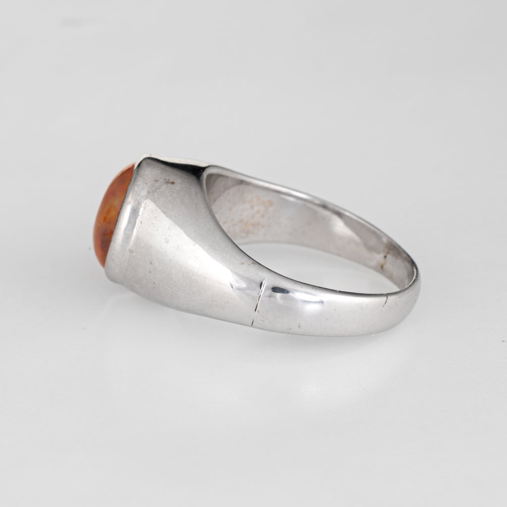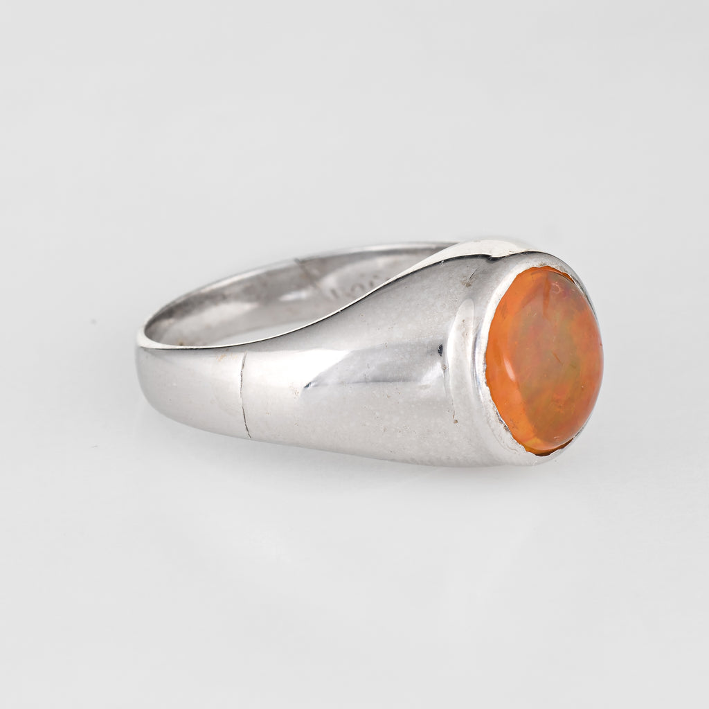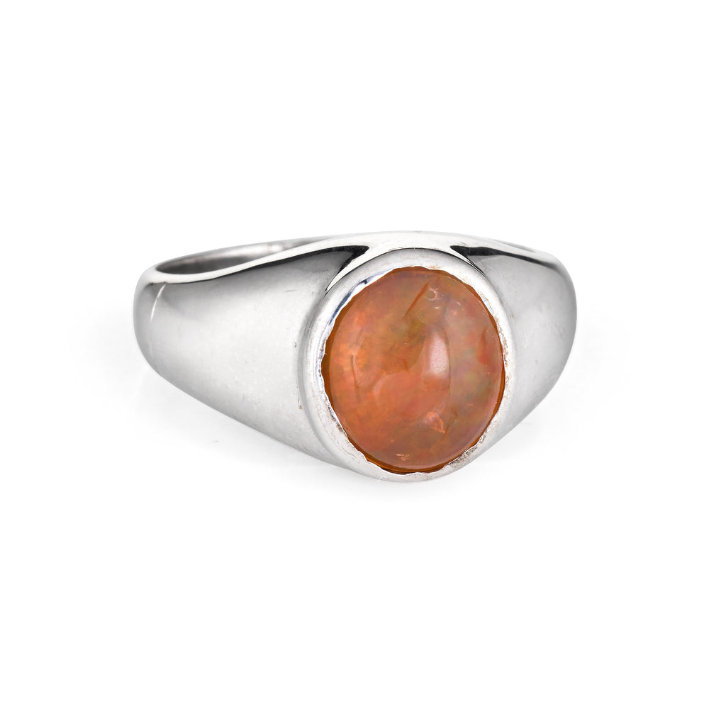 Vintage Mexican Fire Opal Ring 14k White Gold Signet Estate Fine Jewelry Mens