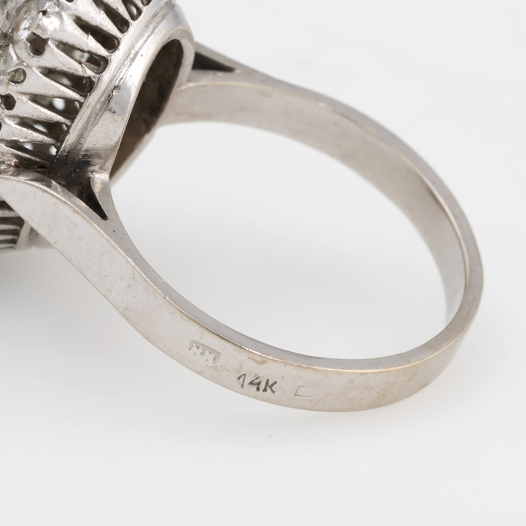 Metal & Hallmark: 14 karat white gold. The ring is hallmarked "14k" (outer band).