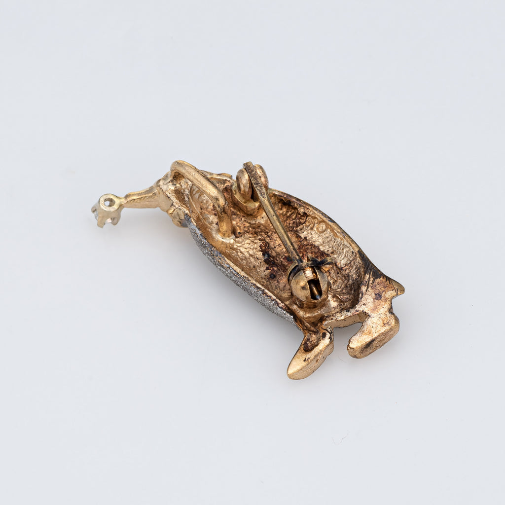 Finely detailed Penguin pendant crafted in two-tone 14 karat yellow & white gold (circa 1960s to 1970s).