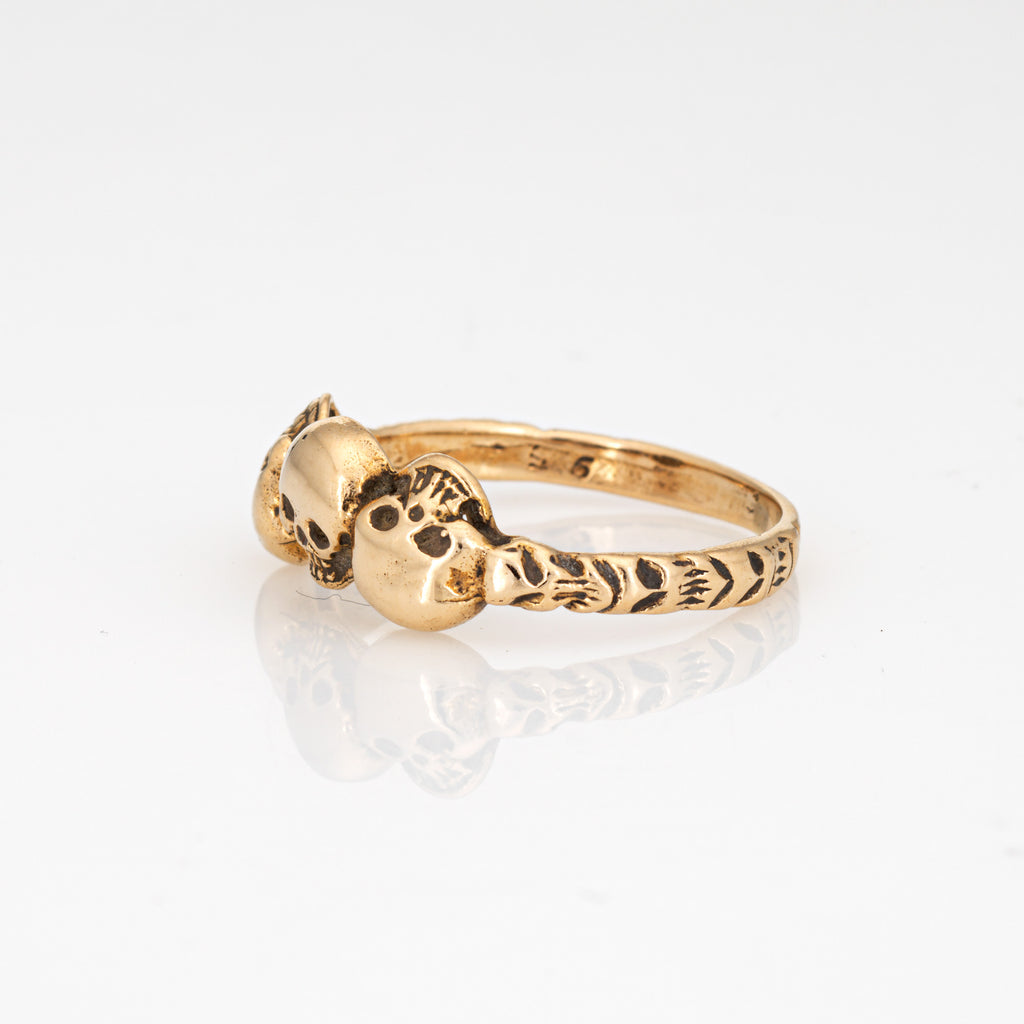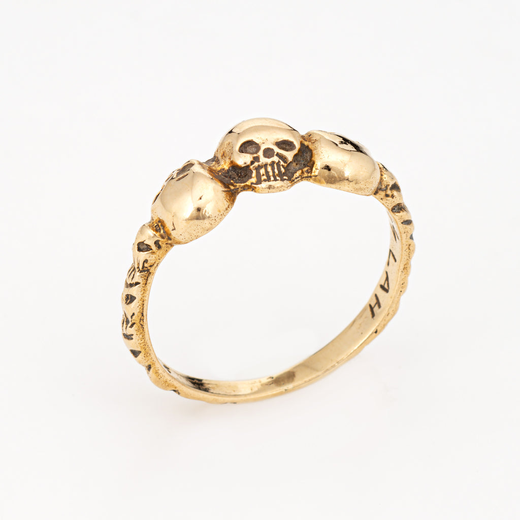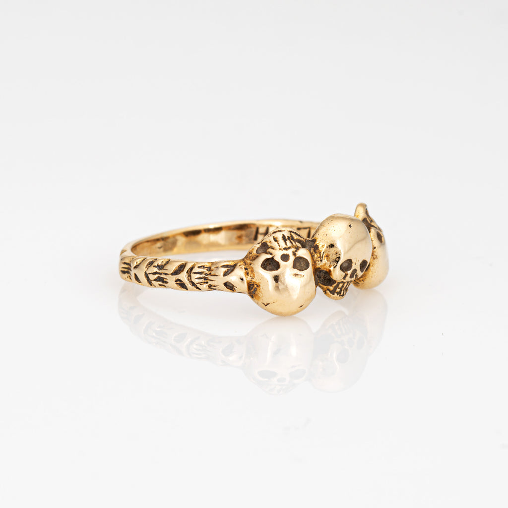 Vintage Skull Ring 14k Yellow Gold Band Sz 8.5 Three Heads Fine Jewelry
