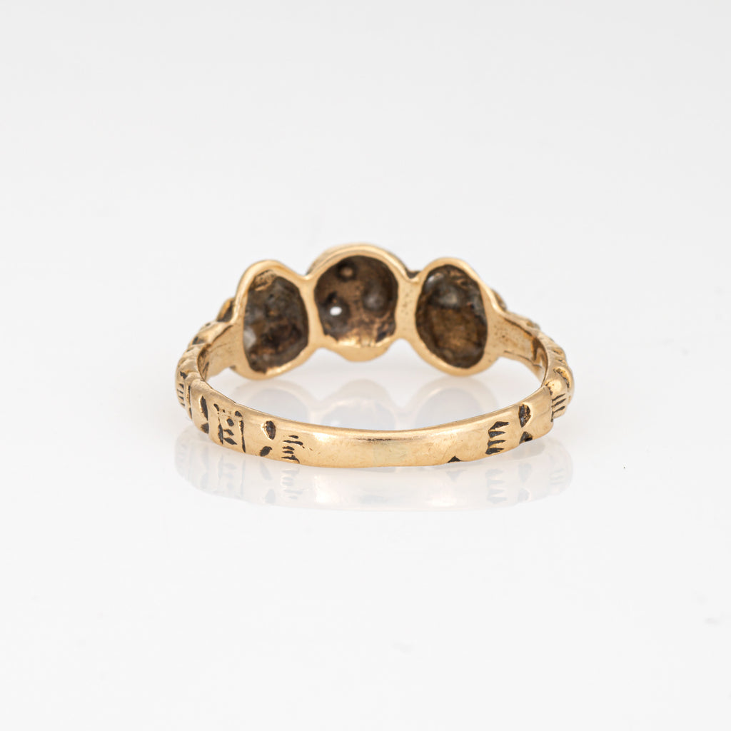 Metal & Hallmark: 14 karat yellow gold. The ring is not hallmarked though it has tested positive for 14k gold.
