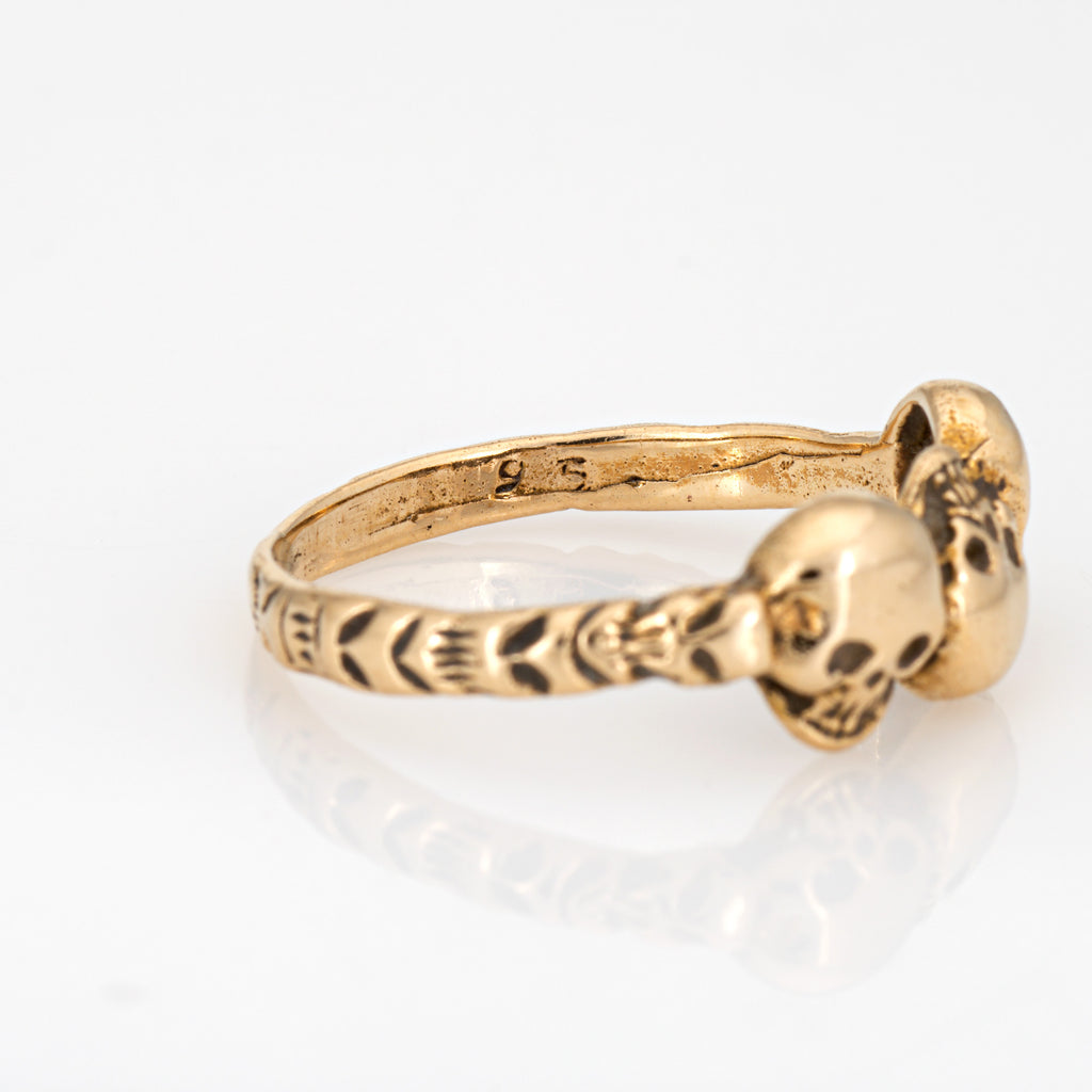 Stylish vintage skull ring crafted in 14 karat yellow gold.