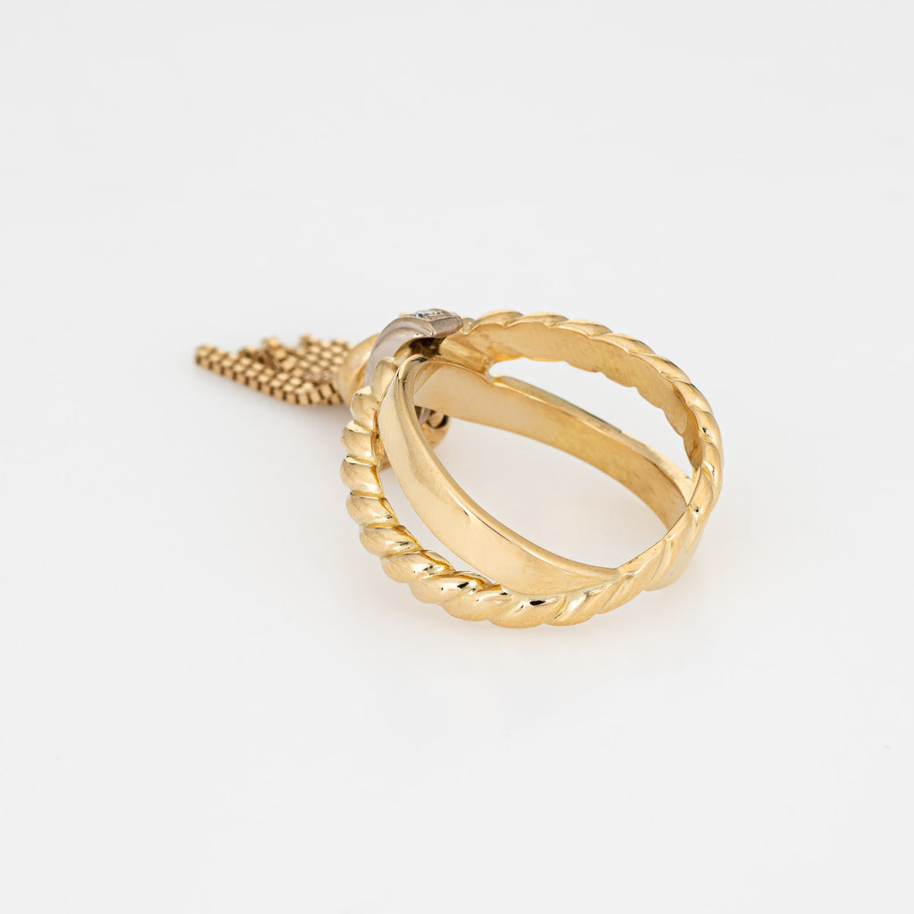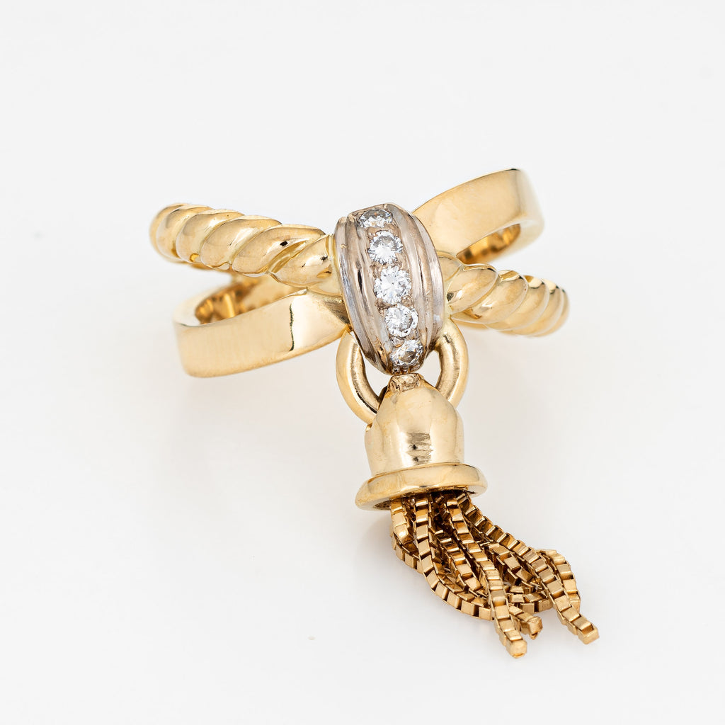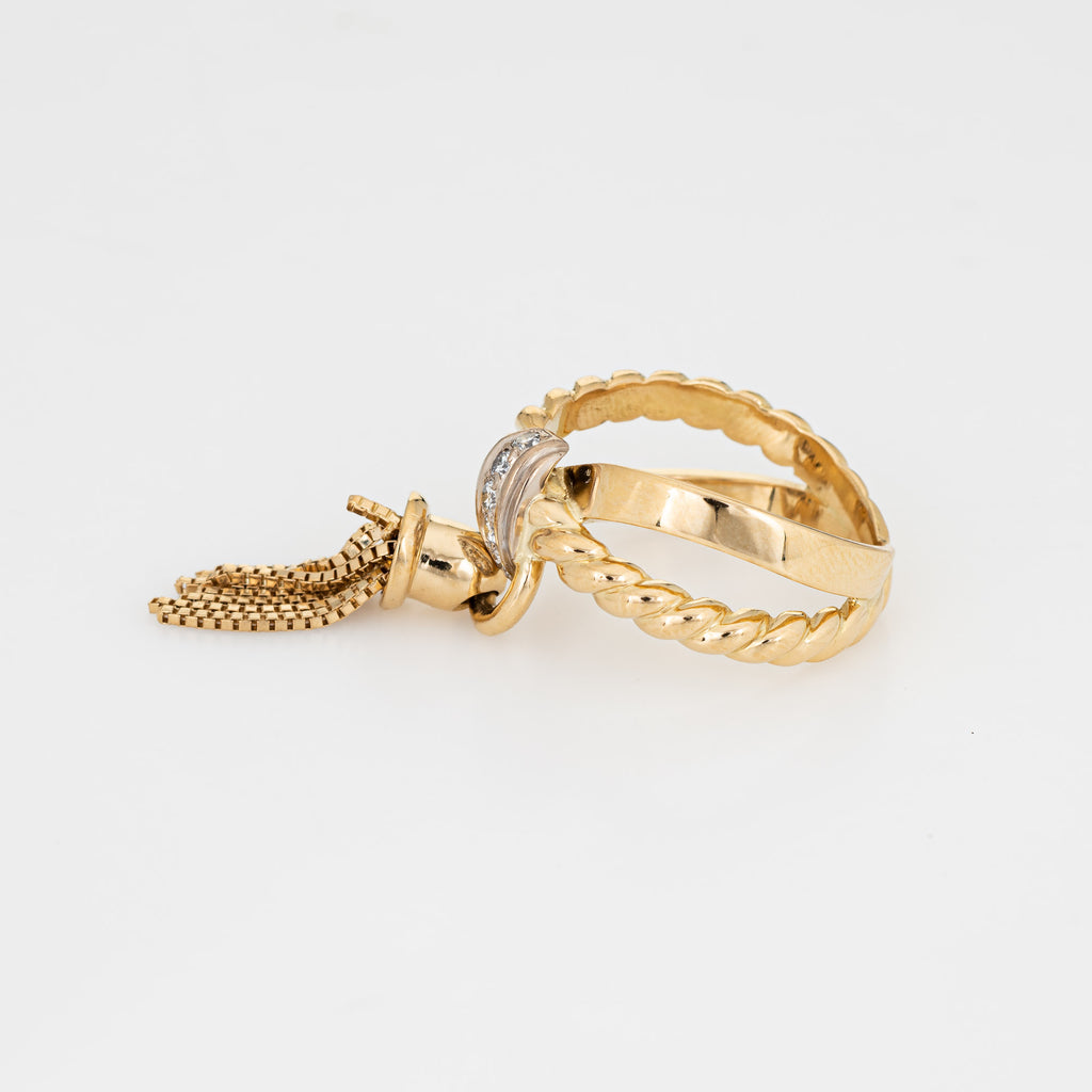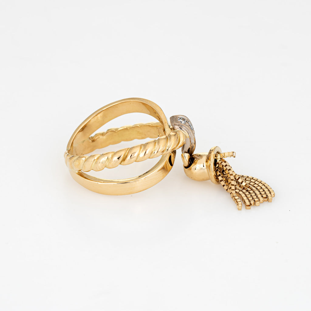 Vintage Tassel Ring Diamond Band Sz 5.5 14k Yellow Gold Estate Fine Jewelry
