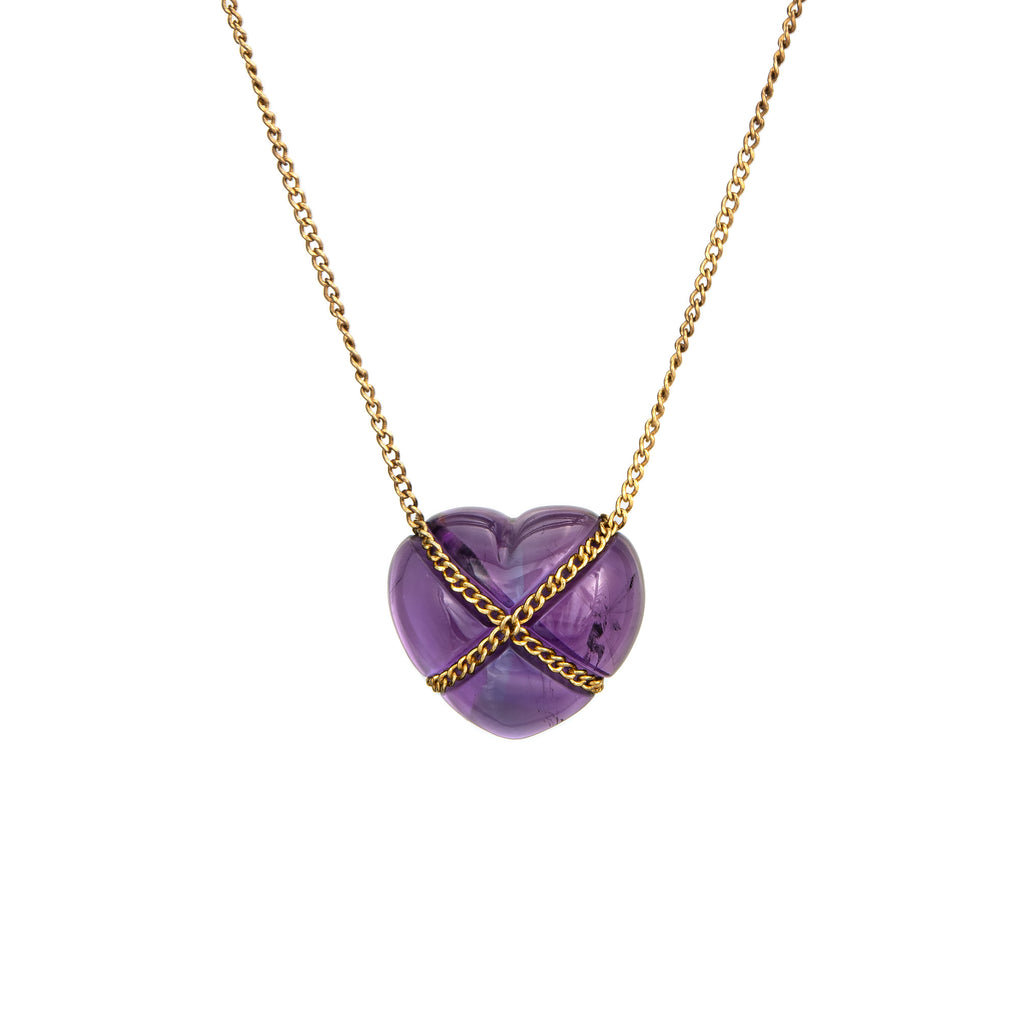 Vintage Tiffany & Co Amethyst Cross My Heart Necklace 18k Yellow Gold 1990s