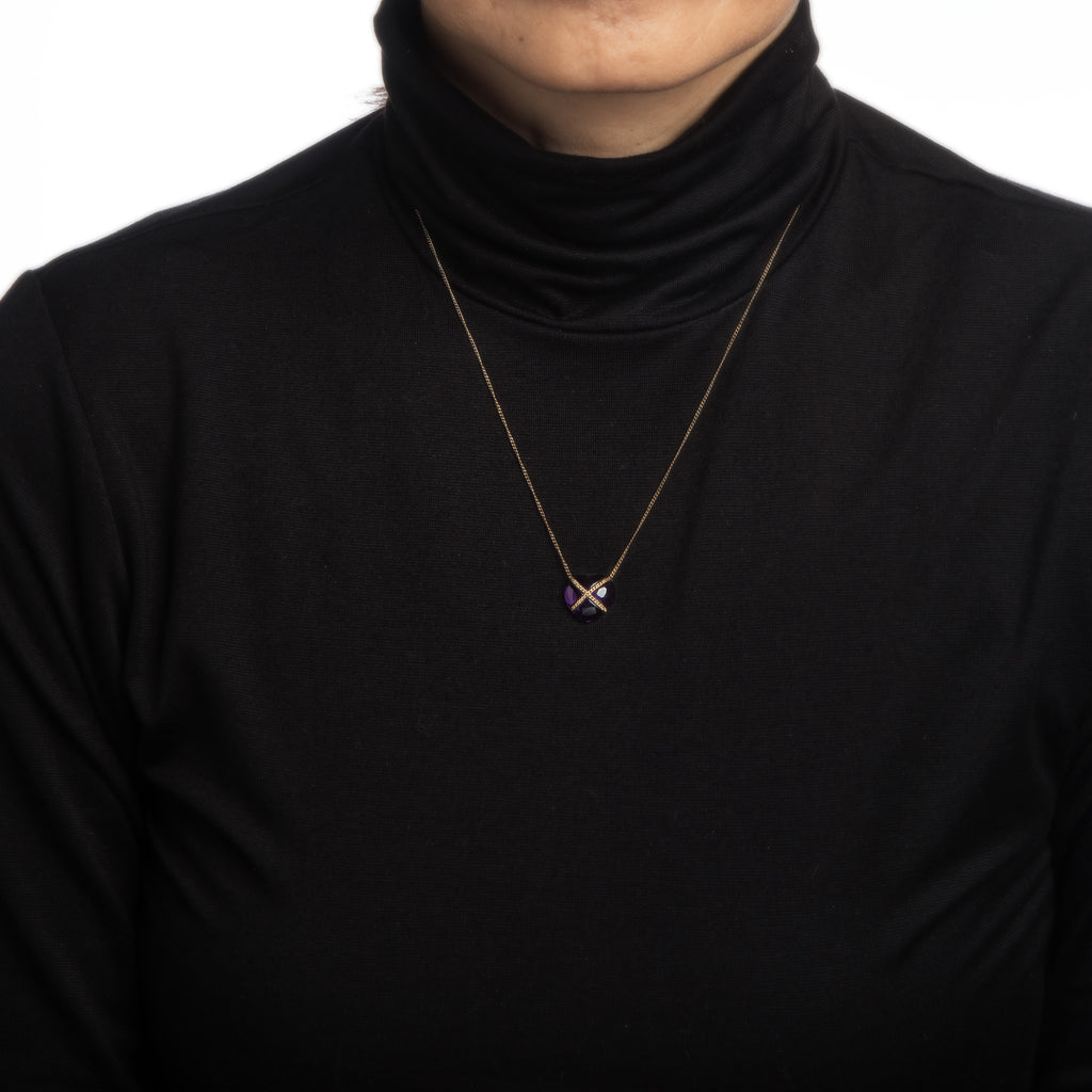 Stones: Amethyst is set into the necklace and measures 13mm x 13mm. The stone is in very good condition and free of cracks or chips.