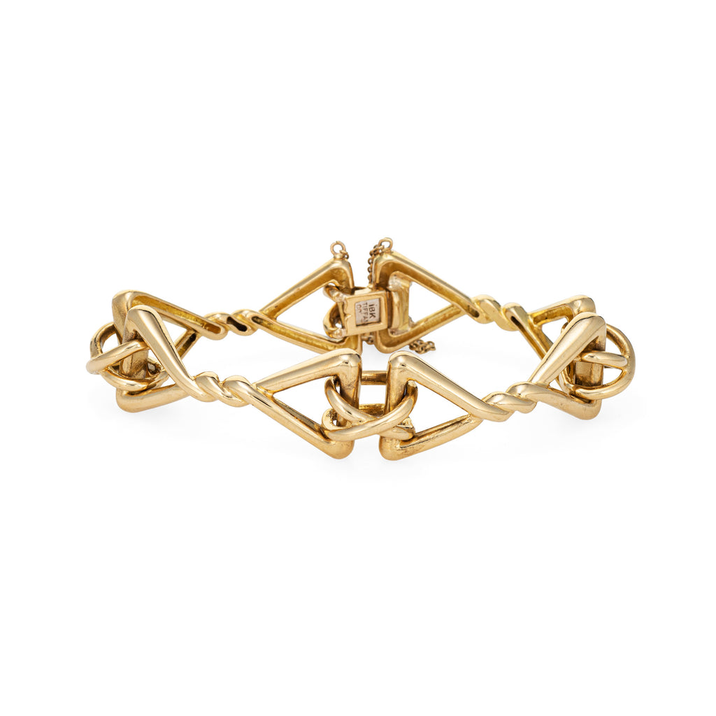 Vintage Tiffany & Co Bracelet 51.1gm 18k Yellow Gold Triangle Fancy Link Jewelry