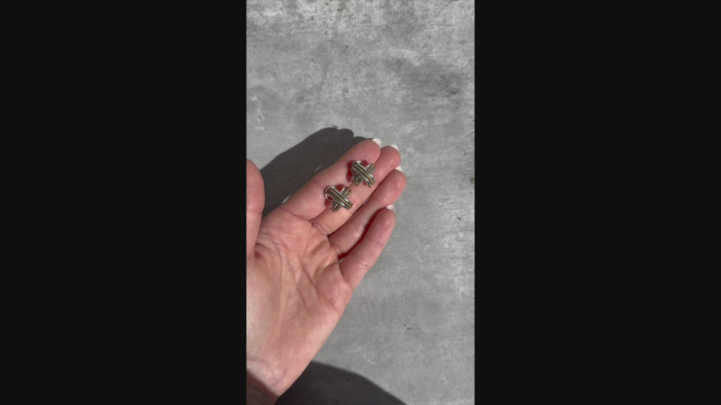 Vintage Tiffany & Co Earrings c1990 Signature X Cross Sterling Silver 18k Gold