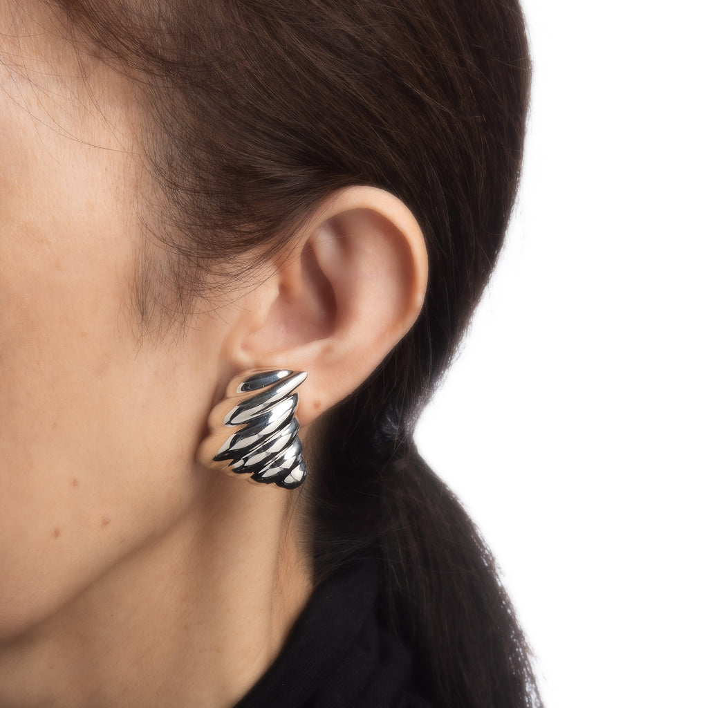 Vintage Tiffany & Co Earrings Sterling Silver Shell Scalloped Design Clip On