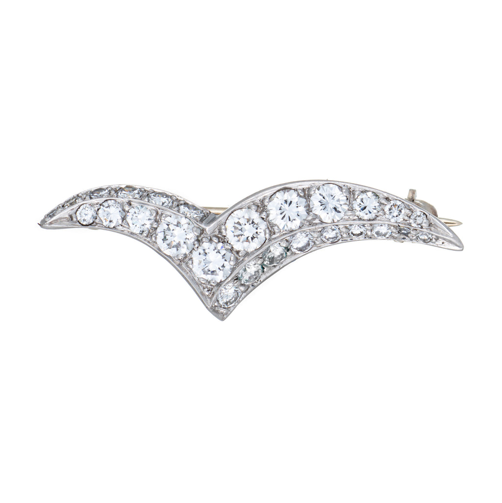 Chic vintage Tiffany & Co diamond 'Seagull' brooch crafted in platinum (circa 1990s).