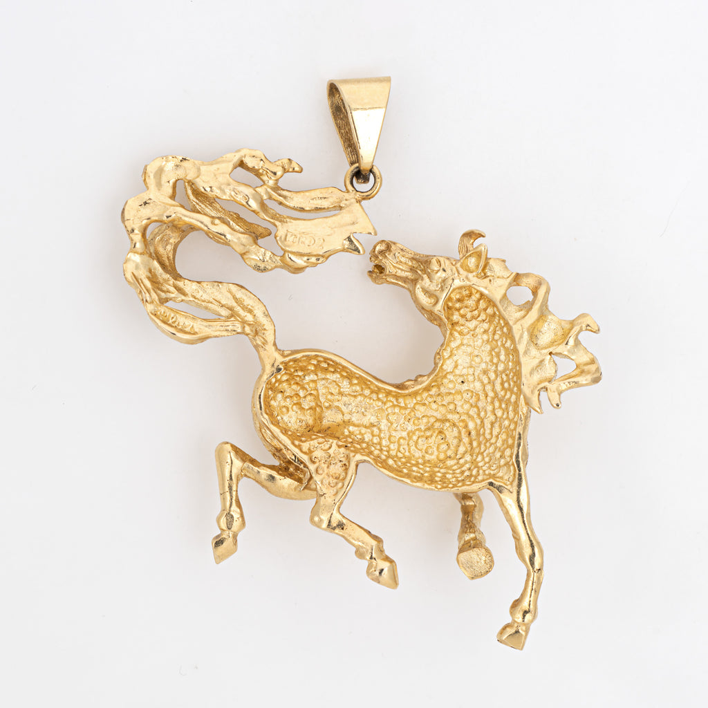 Wild Horse Pendant Vintage 14k Yellow Gold Large Animal Jewelry Fine Estate